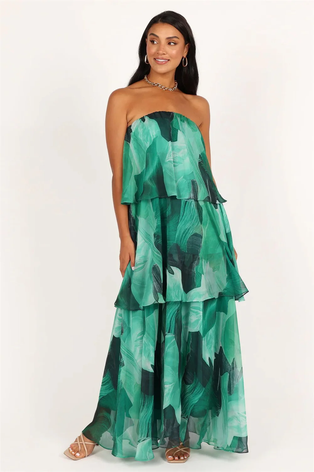 Strapless Lace Print Backless Maxi Dress For Women Summer Beach Vacation Ruffle Tie-dye Off-shoulder Floor-Length Dress Robe