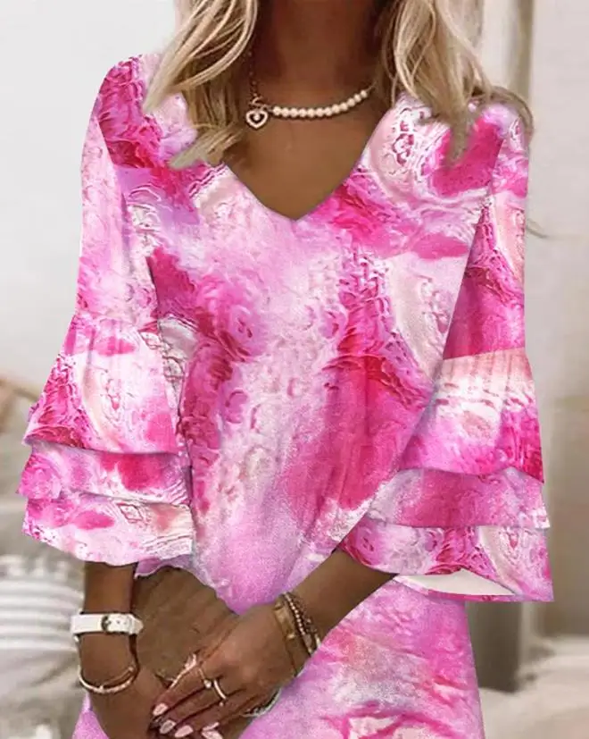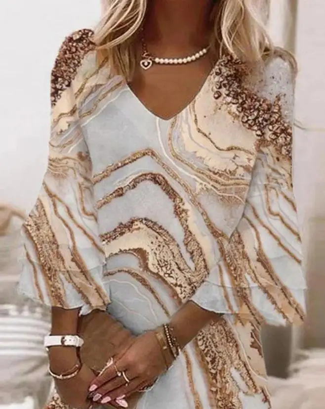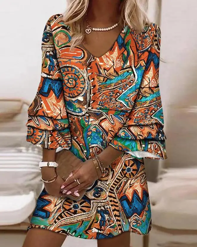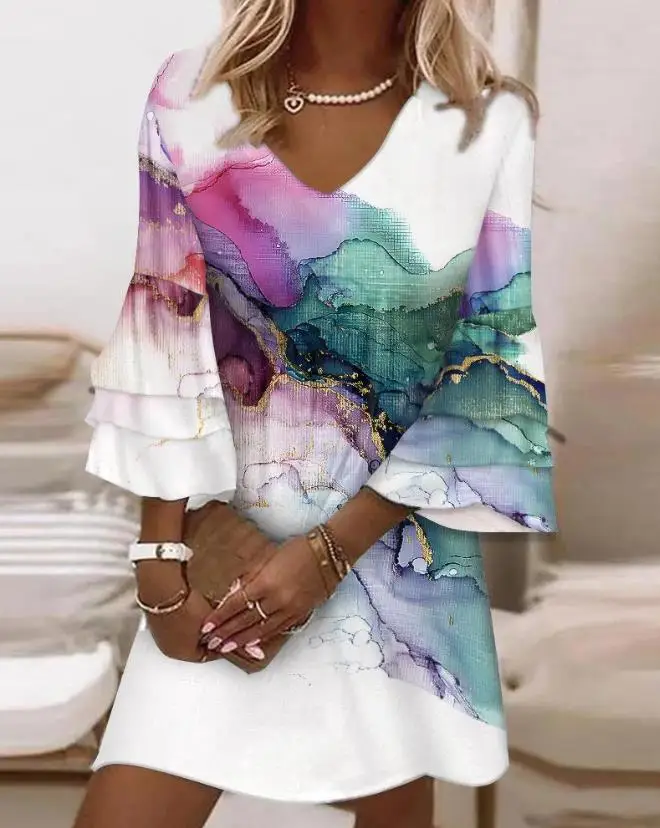 Women Ruffles Mini Dress Summer Fashion Elegant V-Neck Floral Print Patchwork Dresses Loose Pocket Casual Beach Party Vestidos