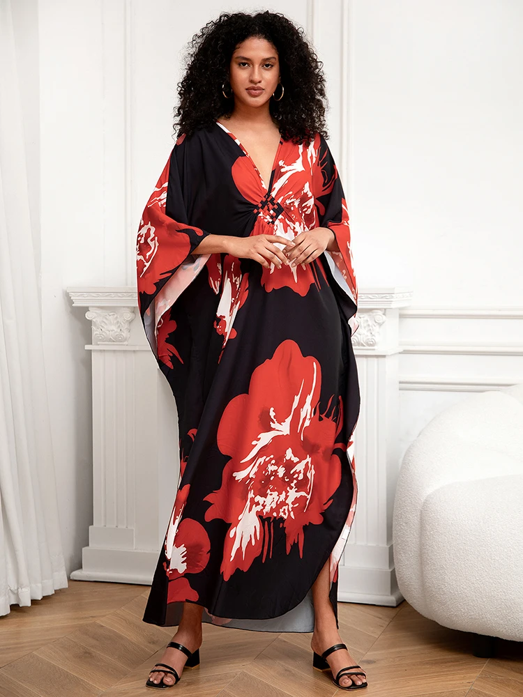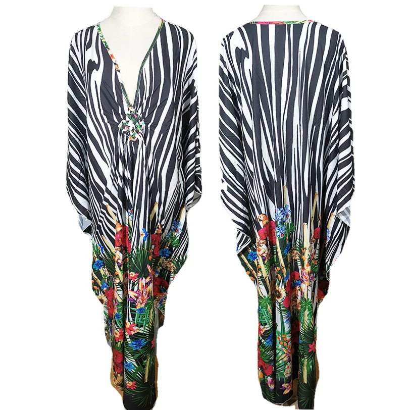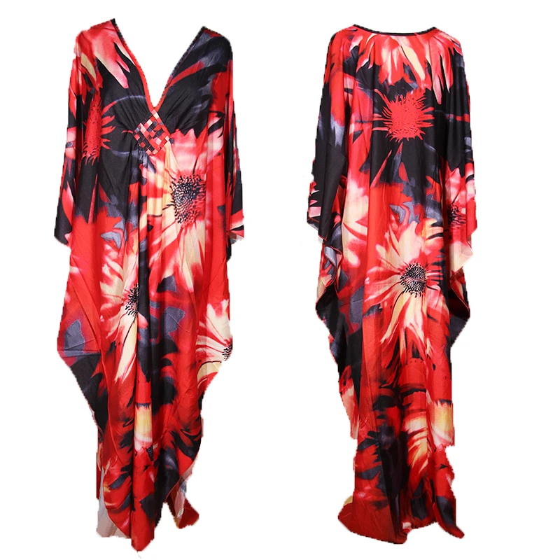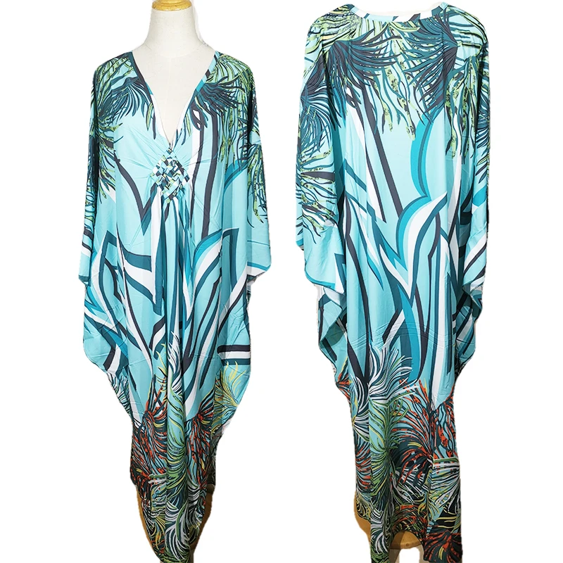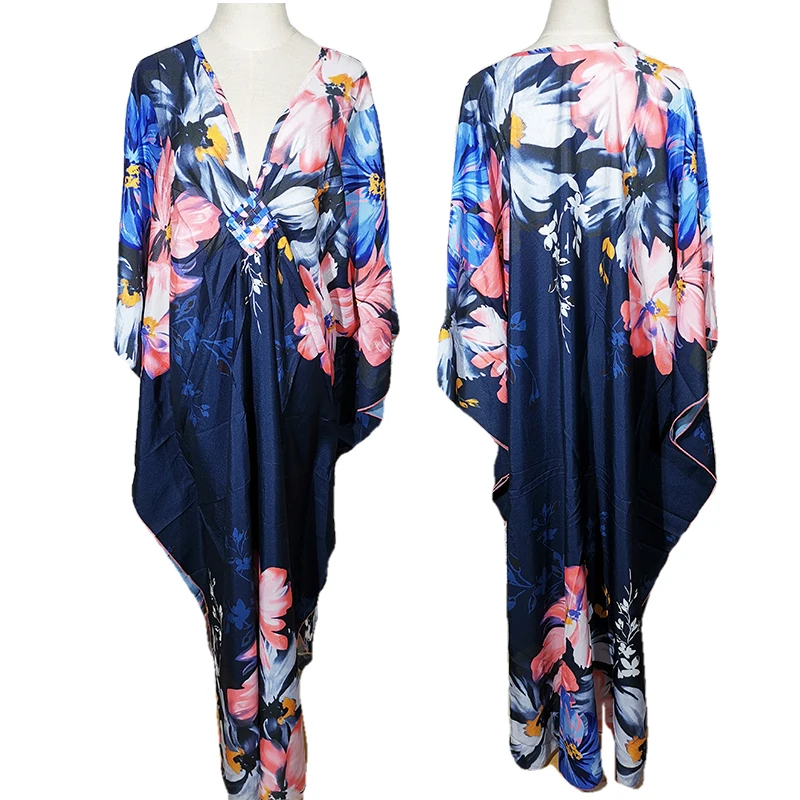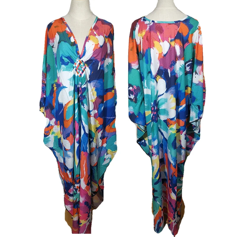 New Floral Print Boho Dress Over size Loose Maxi Long Dress Beach Cover up Robe De Plage Kaftan Tunic for Beach Pareos