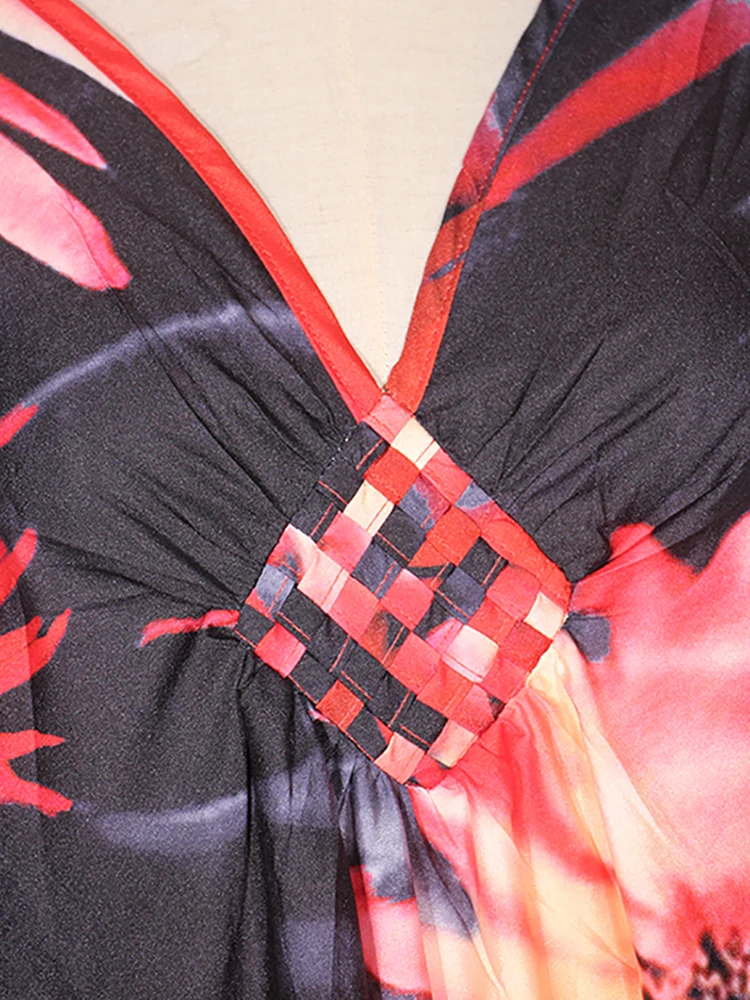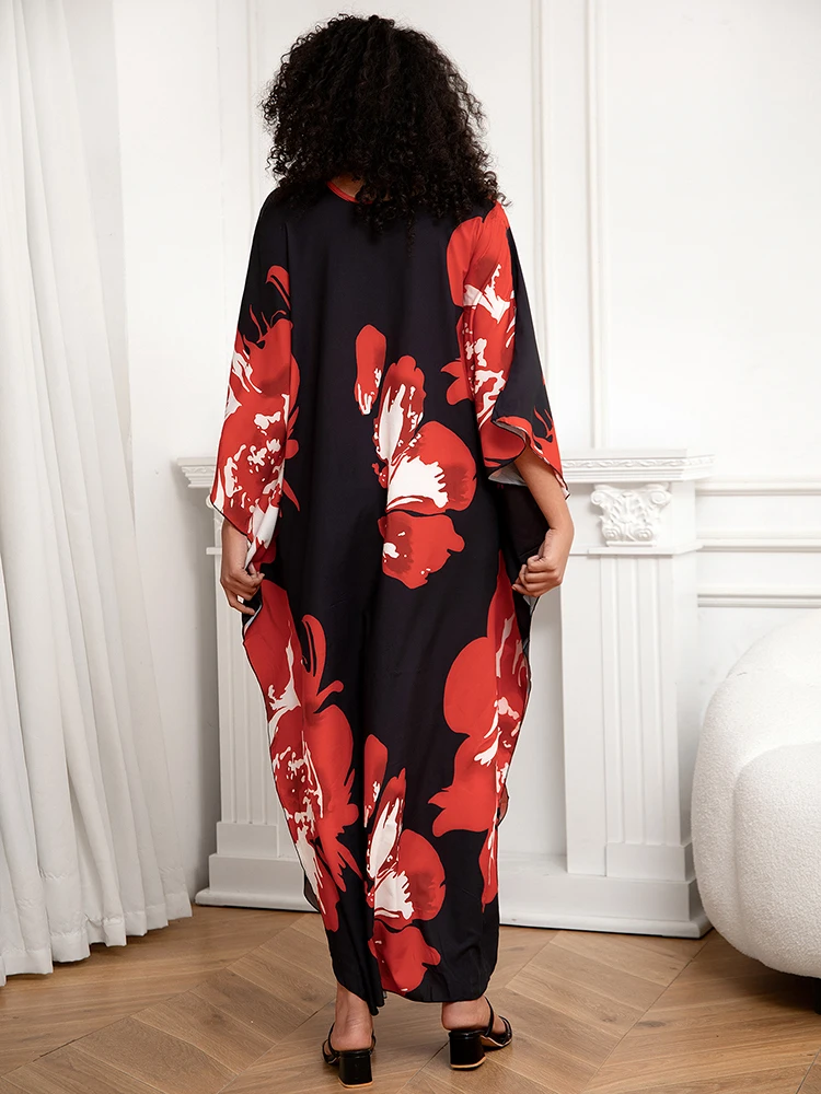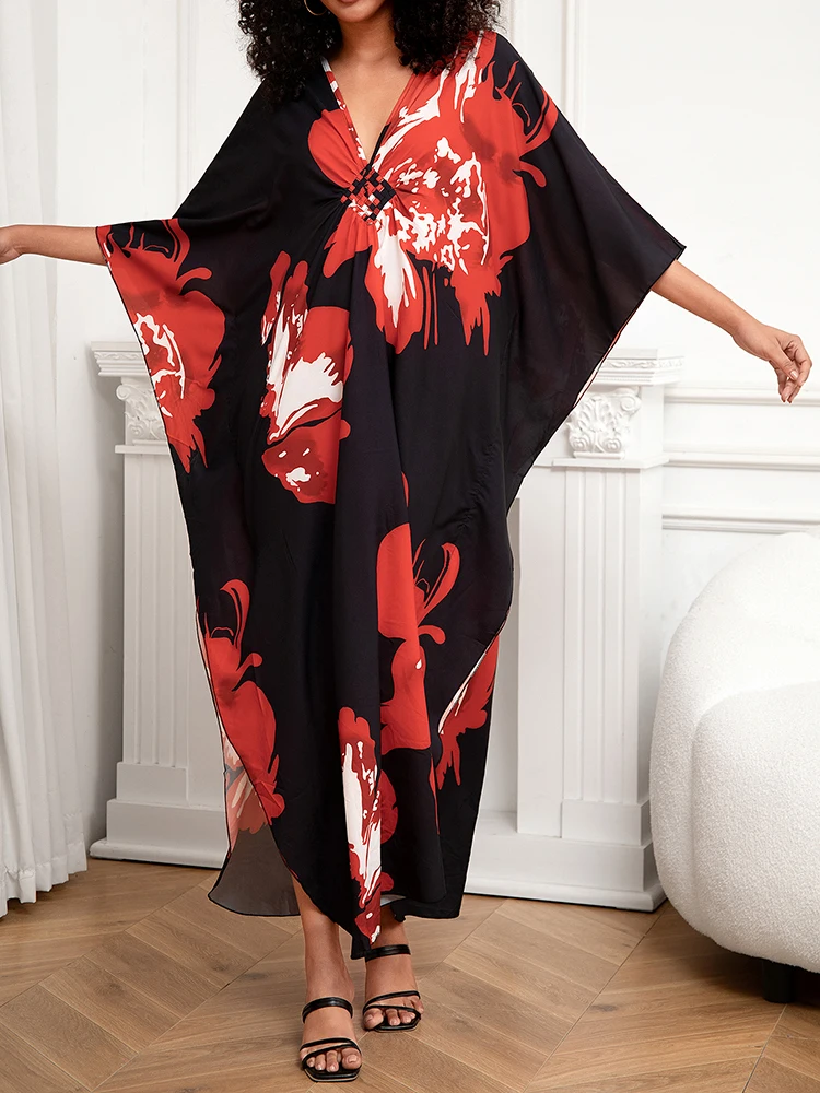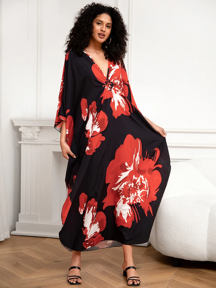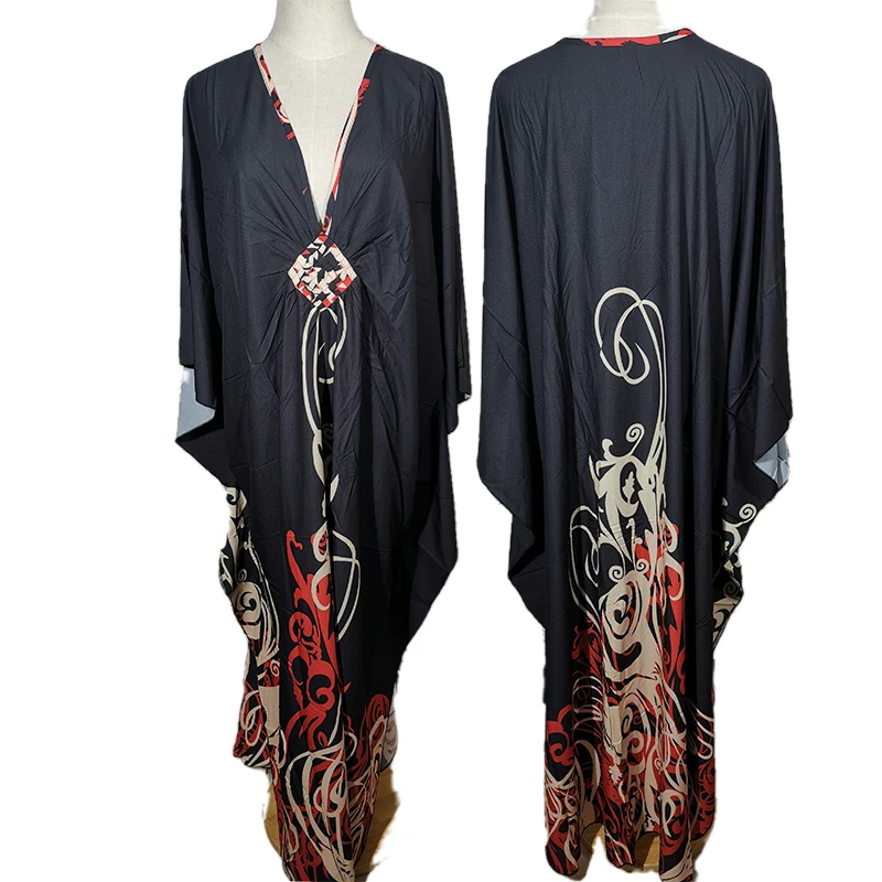 New Floral Print Boho Dress Over size Loose Maxi Long Dress Beach Cover up Robe De Plage Kaftan Tunic for Beach Pareos